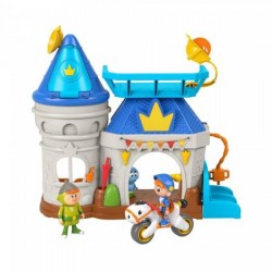 Dzięki zestawowi Gus Mały - wielki rycerz Królewski zamek od Fisher-Price możesz pomóc Gusowi i jego przyjacielowi Tylerowi bronić królestwa przed najeźdźcami. Ten pełen akcji zestaw do zabawy inspirowany zamkiem z bajki ma ukryte wejście w wieży, pułapkę na przeciwników, katapultę wyrzucającą pocisk i stajnię, gdzie Tyler opiekuje się pojazdem-kucykiem Gusa.