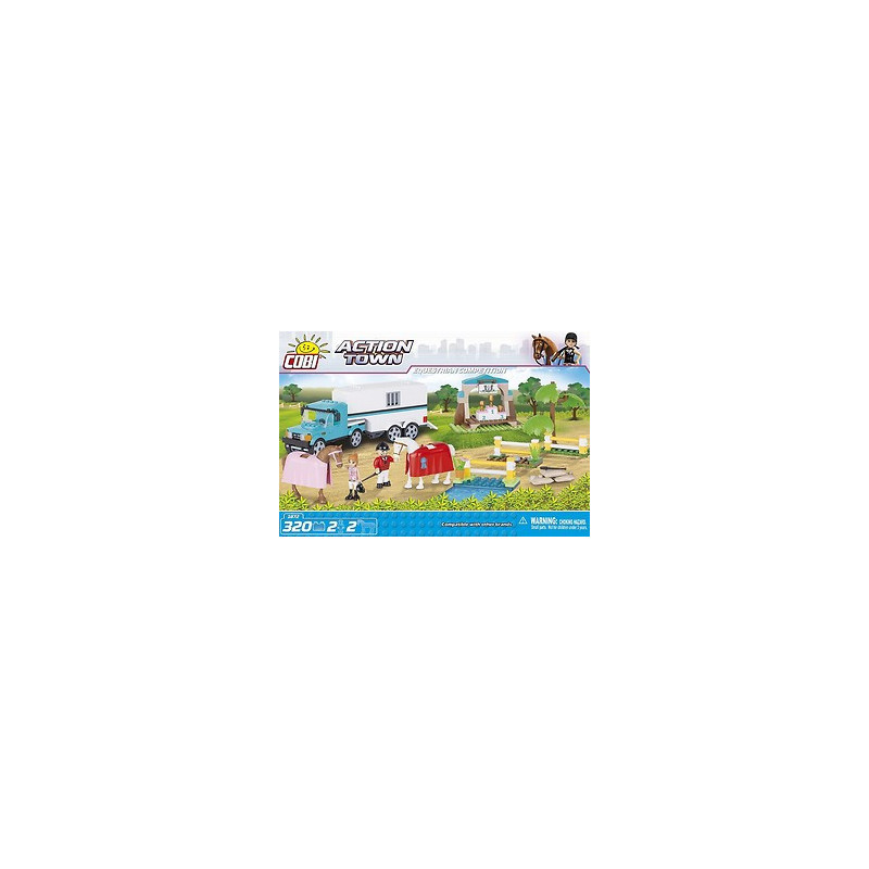 Zestaw klocków firmy COBI Zawody jeździeckie z serii Action Town. Zestaw zawiera:320 elementów4 figurkiWiek 6+