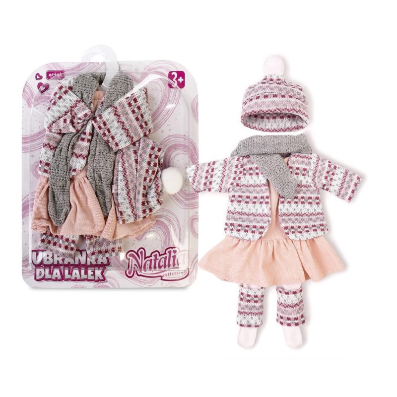 Ubranko dla lalki Natalia składa się z czapki, kurteczki, sukienki, szalika, rajstop oraz getrów. Pasuje na lalkę do 40 cm. Zbierz wszystkie zestawy i twórz z nich własne kreacje (sprzedawane oddzielnie w zależności od dostępności).