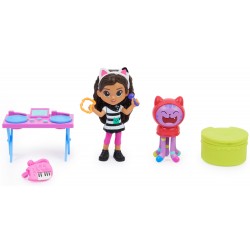 Zestaw zabawek zawiera 8,8-centymetrową figurkę kolekcjonerską Gabi, DJ Kocimiętki, mebel z gramofonem, akcesoria z klawiaturą dla kotka, a także sekretne pudełko z przesyłką do kociego domku z niespodzianką w środku! Tak jak Gabi w serialu, rozpakuj swoją specjalną przesyłkę do kociego domku i odkryj tajemniczy dodatek do zestawu. Co znajdziesz w środku? Po rozpakowaniu, użyj swojej wyobraźni, aby odegrać własne przygody kulinarne z Gabi i DJ Kocimiętką! Umieść klawiaturę lub akcesorium z niespodzianką przy Gabi i daj czadu. Figurka Gabi trzyma w jednej ręce tamburyn, a w drugiej mikrofon, więc może śpiewać swoje ulubione piosenki. Naciśnij kocie uszy Gabi i obserwuj, jak jej ręka porusza się, grając na tamburynie! Naciśnij ponownie kocie uszy, aby podnieść jej ramię z powrotem do góry. To takie zabawne! Następnie kręć kocimi płytami na gramofonie DJ-a.