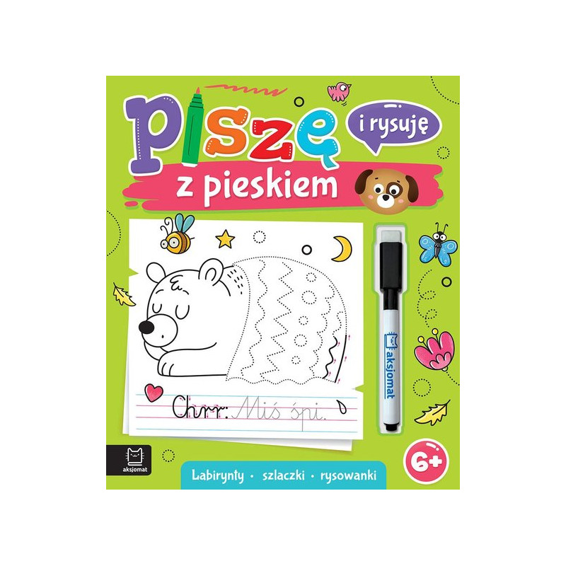 Użyj pisaka, rysuj i pisz po liniach przerywanych oraz szukaj dróg w labiryntach. Sympatyczny kotek zachęca do nauki pisania oraz kolorowania – co przygotuje małe rączki do trudnej sztuki pisania w liniach oraz edukacji szkolnej. Bawiąc się tą książką, dziecko rozwinie również koncentrację, staranność i cierpliwość. Zabawowa forma zachęca do pierwszych ćwiczeń związanych z pisaniem i pomoże rozwinąć logiczne myślenie. Dołączony do książeczki pisak i zmywalny papier umożliwiają niekończącą się zabawę w rysowanie i zmazywanie – nieudaną kreskę można zetrzeć i narysować ją jeszcze raz. Oprócz ciekawych rysunków, dzieci znajdą tu także krótkie podpisy obrazków, doskonałe do pierwszych ćwiczeń w czytaniu. Książka z pisakiem to idealne połączenie nauki i zabawy!