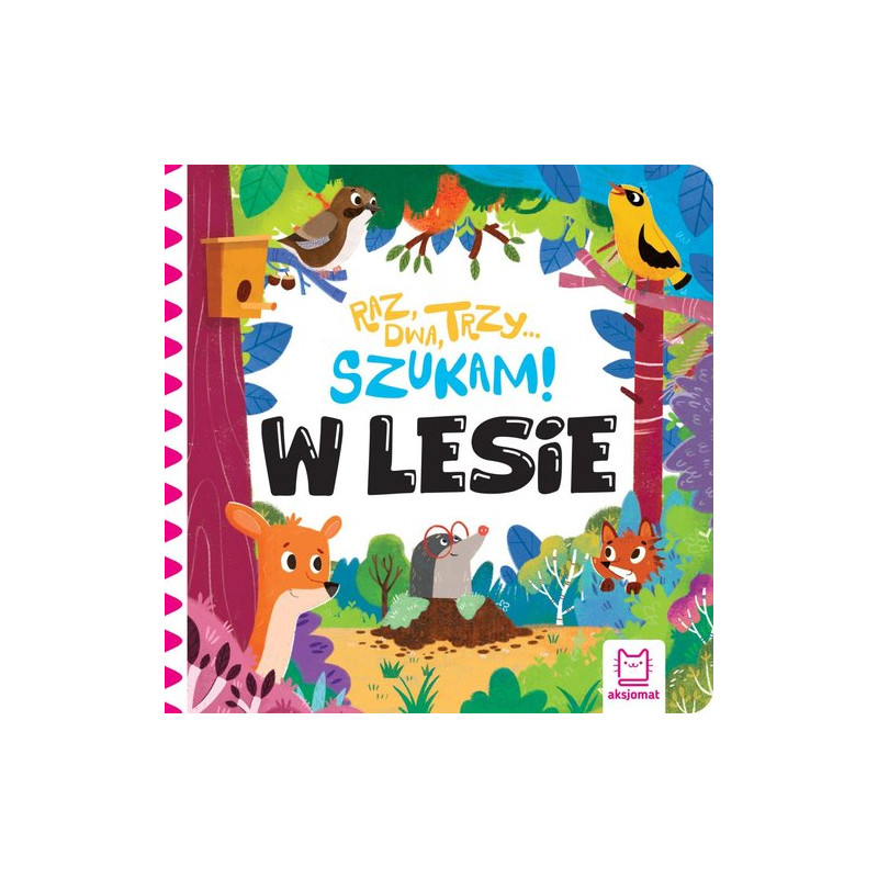 Dziecko poznaje zwierzęta mieszkające w lesie dzięcioła, lisa, sarnę, sójkę, zająca, dziki, bobra, wydrę, łosia, sowę, wilgę, wiewiórkę, wilka, niedźwiedzia, jelenia – nazywa je i rozpoznaje pośród innych zwierzaków na dużej ilustracji. Starannie zilustrowana i ciekawie opracowana książeczka spodoba się małym czytelnikom i przybliży im świat zwierząt. „Raz, dwa, trzy… Szukam W lesie” to doskonała zabawa i sposób na wzbogacenie wiedzy malucha.