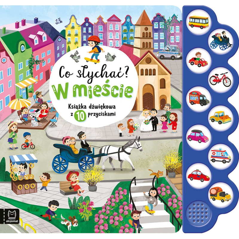Maluchy z zapałem poznają świat, używając do tego wszystkich zmysłów. Książka dźwiękowa z przyciskami i bogatymi ilustracjami odpowiada ich potrzebom. Bawiąc się nią, dzieci poznają pojazdy, dowiadują się, jak się żyje w mieście, a powtarzając wierszyki i naśladując odgłosy, rozwijają pamięć, słuch oraz wrażliwość na słowo i obraz. Jak korzystać z tej książki - Aby wysłuchać nagrania, naciśnij kółeczko. By je wyłączyć, naciśnij jeszcze raz. - Słuchaj z dzieckiem wierszyków i zachęcaj do ich powtarzania. - Na każdej rozkładówce książki znajduje się gołąb z czerwoną obrączką i pies dalmatyńczyk. Poszukaj ich z dzieckiem. - Proś dziecko, by wskazywało i mówiło, gdzie znajdują się inne elementy. - Nazywaj elementy obrazka, licz je i zachęcaj dziecko do opowiadania.