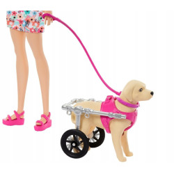 W tym zestawie znajdziesz szczeniaczka oraz dorosłego psa ze zwierzęcym wózkiem inwalidzkim. Te śliczne pieski uwielbiają spacery z Barbie!