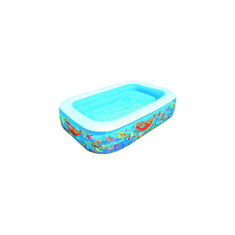 Basen dmuchany firmy Bestway. Dmuchany basen familijny pomieści kilka osób. Jego półprzezroczyste ścianki ozdobione są zwierzętami oraz roślinami podwodnymi, które przeniosą Cię w morski świat. Dodatkowo do zestawu dołączono łatkę naprawczą. Pojemność 702 litrów Wymiary 229 x 152 x 56 cm Wiek 6+