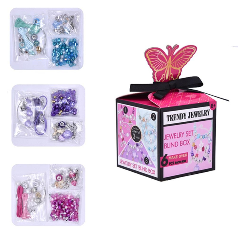 Zestaw koralików w ozdobnym pudełku z motylkiem i wstążką 3 różne zestawy do wyboru