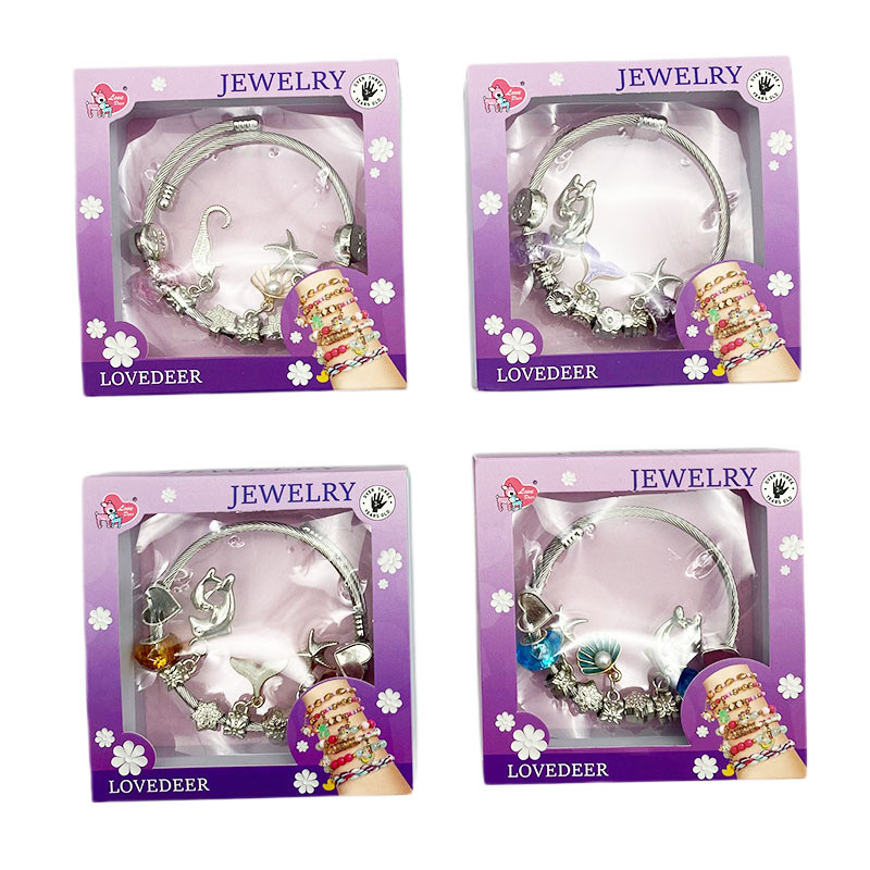 Śliczna bransoletka z zawieszkami to idealny dodatek dla każdej małej wielbicielki pięknej, błyszczącej biżuterii. Zestaw zapakowany jest w eleganckie pudełeczko 9 x 9 cm, dzięki czemu świetnie sprawdzi się również jako prezent.