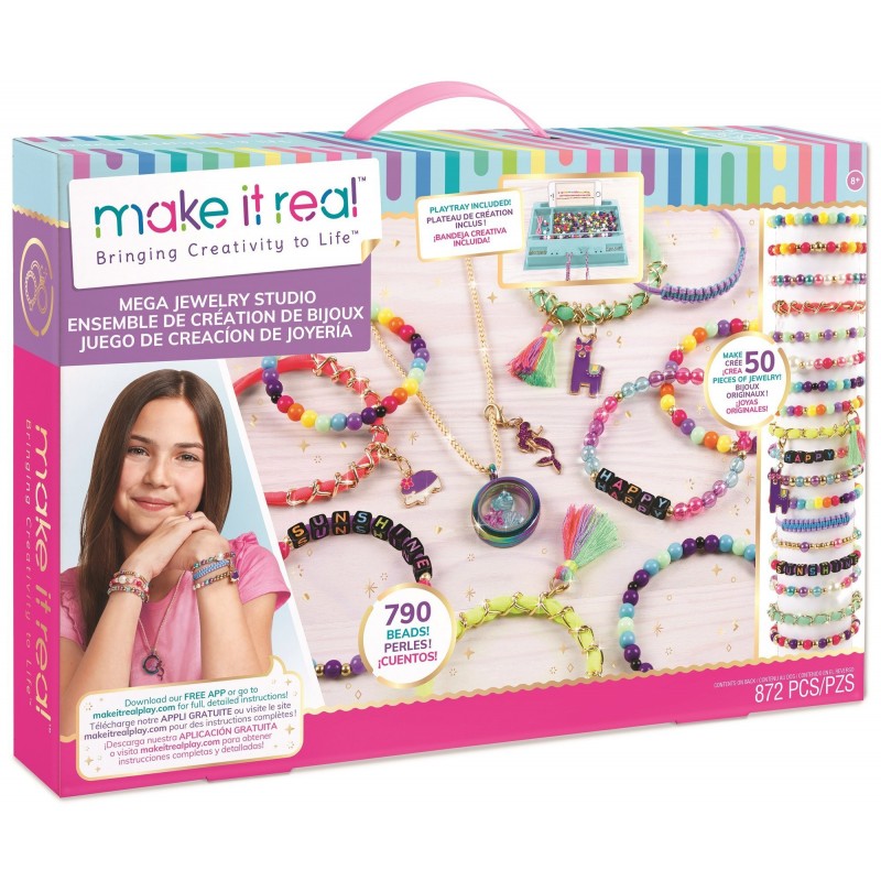 Zestaw do bransoletek to propozycja stworzona przez popularną markę Make It Real, skierowana w stronę początkujących projektantek i artystek. Zawiera wszystkie najpotrzebniejsze przedmioty potrzebne do zrobienia bransoletek z kolorowych koralików.