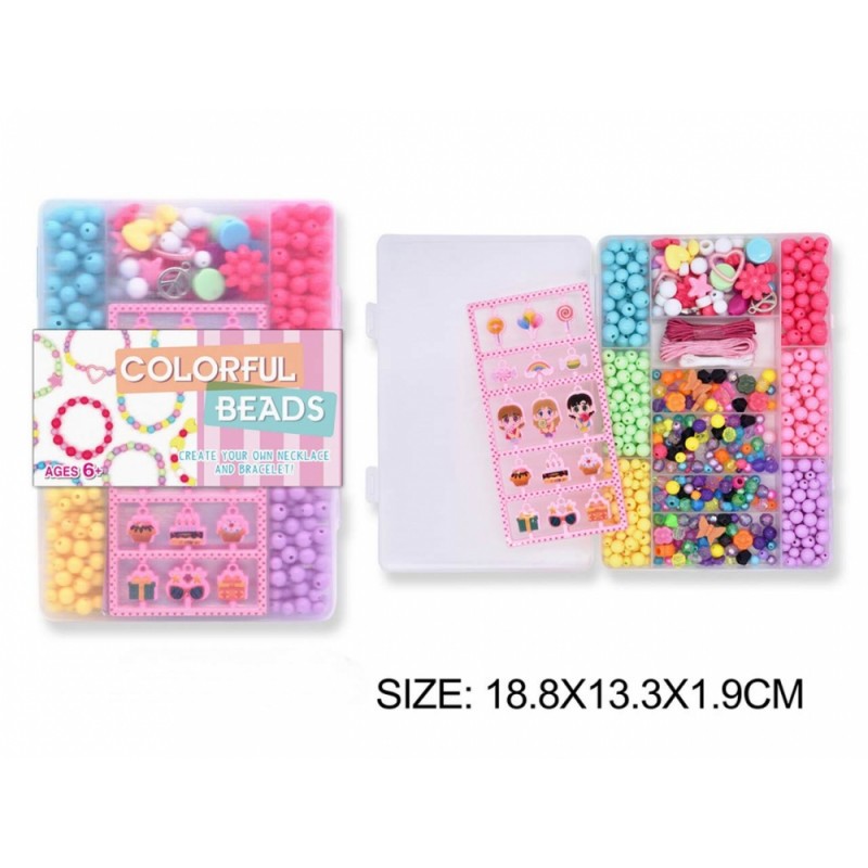 Zestaw zawiera, dużą ilość kolorowych koralików z których można, tworzyć i projektować biżuterię.