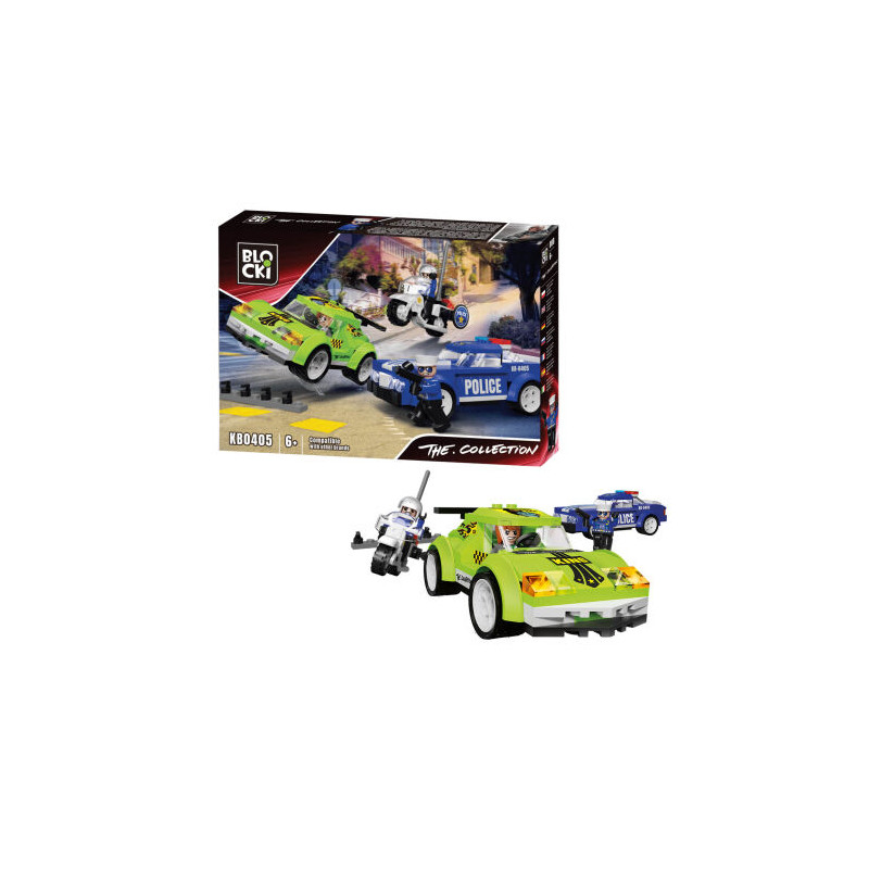 - klocki do złożenia samochodu wyścigowego i radiowozu policyjnego