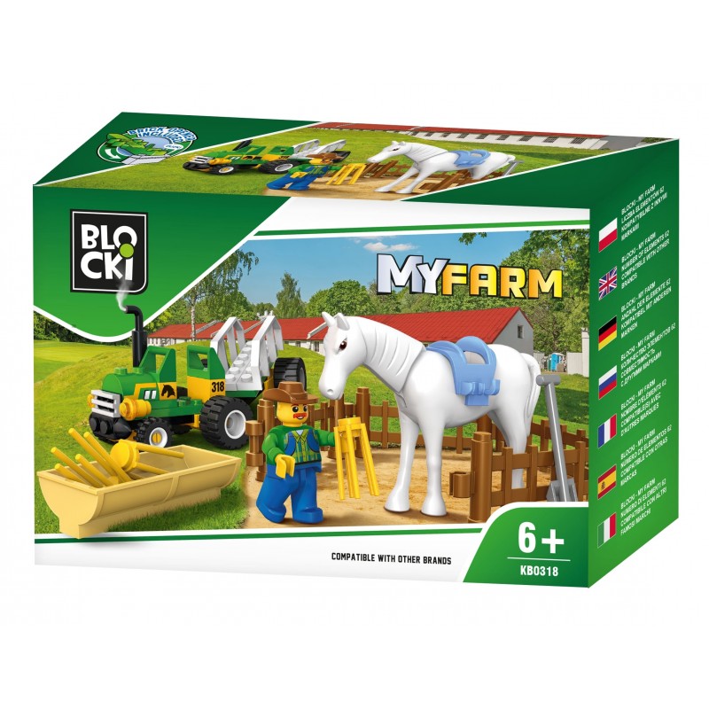 Zestaw Klocki Blocki My Farm zawiera 43 elementy z których samodzielnie zbudujesz traktor .Do zestawu dołączona jedna figurka ludzika, konia oraz akcesoria. Zbierz całą kolekcję My Farm i ciesz się zabawą bez końca. Klocki Blocki są w pełni kompatybilne z innymi klockami. Klocki kształtują wyobraźnię i rozwijają zdolności manualne dziecka.