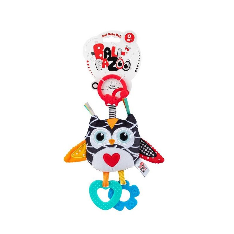 Kolorowa sówka wywoła uśmiech na buzi bobasa. Do zabawki doczepione są dwa gryzaczki, a w jej wnętrzu kryje się dzwoneczek, który wydaje wesoły dźwięk przy potrząsaniu. Sowa uszyta została z materiałów różniących się fakturą i kolorem, przez co będzie ona stymulować zmysły malucha, zachęcając go do poznawania świata. Praktyczna zawieszka, w którą wyposażona została zabawka, pozwoli w łatwy sposób przymocować ją w wybranym miejscu.