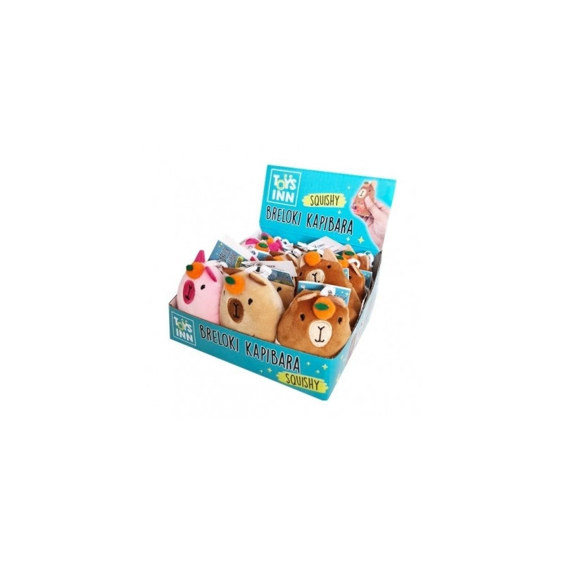 Wykonany jest z miękkiego i przyjemnego w dotyku pluszu. Jego cechą jest ukryty w brzuszku element squishy. Po naciśnięciu breloka, z jego wnętrza wysuwają się miękkie, kolorowe i sprężyste kuleczki, które wracają do środka po zwolnieniu nacisku. Ten element zapewnia wiele radości i zabawy oraz jest doskonałym sposobem na redukcję stresu. Dodatkowo brelok wyposażony jest w praktyczny, plastikowy karabińczyk, który w łatwy sposób pozwala przymocować go do kluczy, piórnika, plecaka czy torebki.