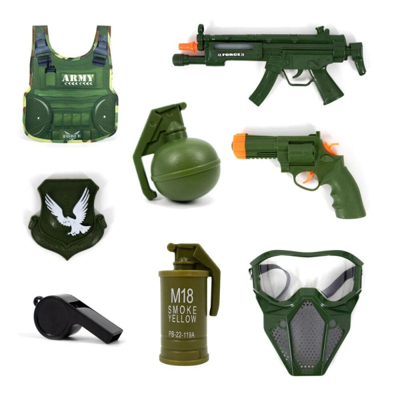 Przepiękny zestaw wojskowy, idealny do odgrywania roli żołnierza!