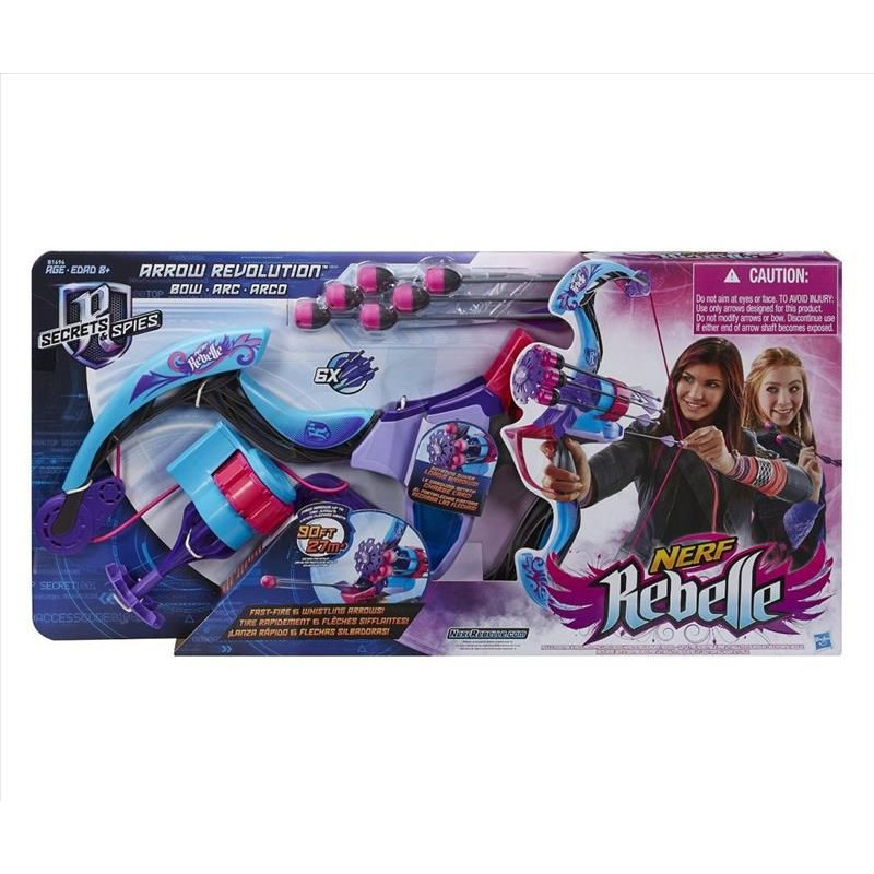 HASBRO B1696 NERF REBELLE ŁUK SZPIEGOWSKI Przejmij dowodzenie nad misją z prawdziwym łukiem, który zapewni ci dominację nad innymi agentkami. 6 świszczących strzał, które wystrzelisz jedna po drugiej dzięki obrotowemu magazynkowi. Naciśnij spust by przeładować strzałę, potem tylko napnij cięciwę. wyceluj i gotowe. Stylizowany na najprawdziwszy łuk to najmodniejsza wyrzutnia dla agentek Rebelle. Nerf Rebelle i wszystkie związane z nim znaki są znakami towarowymi firmy Hasbro.Zawiera łuk, 6 strzał i instrukcje.Wyrzutnia ma zasięg 27 metrów! Zestaw zawiera wbudowany celownik i 6 strzał. Wiek 5+ Uwaga:Nieodpowiednie dla dzieci w wieku poniżej 3 lat ze względu na ryzyko udławienia małymi elementami.