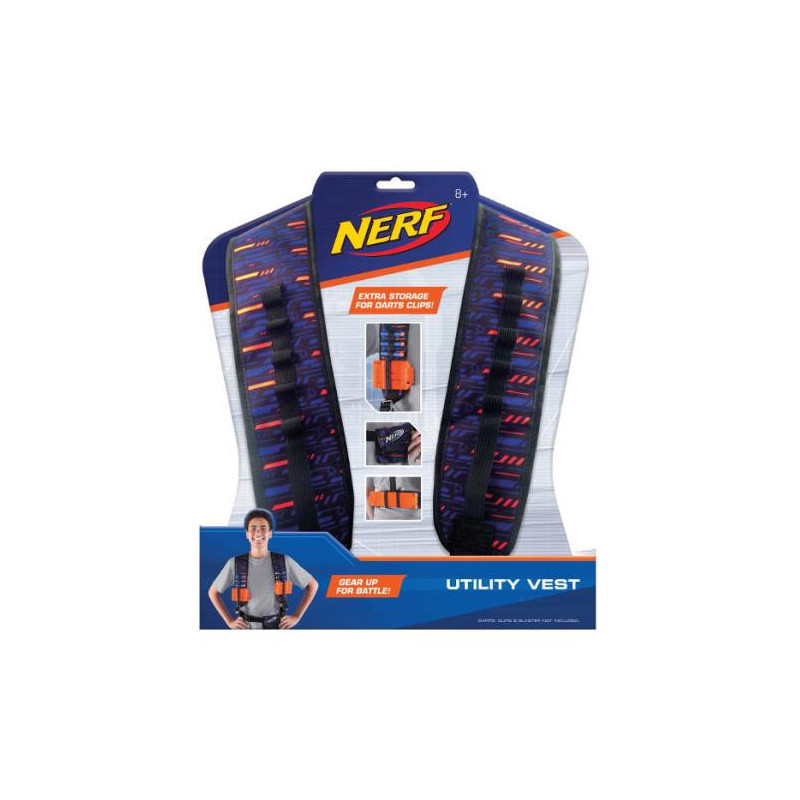 Nerf Kamizelka na akcesoria firmy TM Toys. Kamizelka wykonana z wytrzymałego, mocnego materiału pomieści mnóstwo akcesoriów. regulowane paski. Zestaw nie zawiera strzałek. Wiek 8+ Ostrzeżenie:Nieodpowiednie dla dzieci w wieku poniżej 36 miesięcy. Małe części.