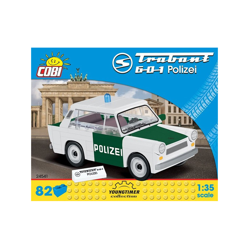 Zestaw klocków firmy COBI Trabant 601 Polizei z serii Youngtimer Collection. Zestaw zawiera:82 elementy Skala 1:35 Wiek 5+