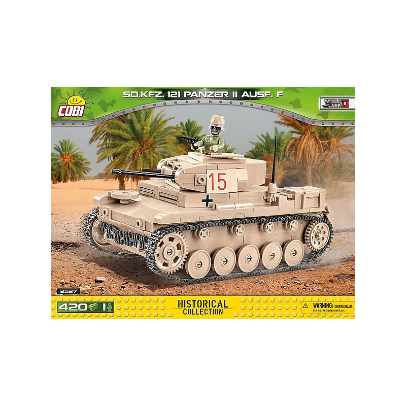Z zestawu klocków konstrukcyjnych COBI wybudujesz czołg lekki PzKpfw II. Wysokiej jakości nadruki naśladują malowanie pojazdu w barwach DAK (Deutsche Afrikakorps) oraz imitują detale oporządzenia. Nadruki są bardzo trwałe i nie ścierają się nawet w trakcie intensywnej zabawy. Pojazd został wyposażony w działającą trakcję gąsienicową, ruchomą lufę, otwierane włazy oraz zasobniki. Czołg został zaprojektowany z wielką starannością. Liczne klockowe detale takie jak skrzynki, zapasowe koło, wentylacja czy tłumik uzupełniają konstrukcję, czyniąc ją jeszcze atrakcyjniejszą.