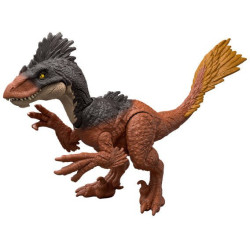 Realistyczna figurka Atakujący dinozaur Jurassic World, inspirowana filmem „Jurassic World Odrodzenie ” ma funkcję ataku, ruchome punkty i wiernie odwzorowany wygląd. Zestaw obejmuje 1 dinozaura. Dodatkowo, wystarczy zeskanować kod tropiący z nogi dinozaura w bezpłatnej aplikacji Jurassic World Play za pomocą kompatybilnego smartfona- tabletu (z Androidem lub iOS – nie znajduje się w zestawie), aby uzyskać dostęp do wirtualnej wersji dinozaura i zagrać w grę wyścigową na lądzie, morzu i w powietrzu. Kolory i elementy dekoracyjne mogą się różnić.