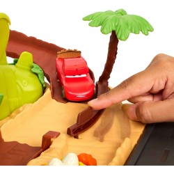 Użyj wyrzutni, aby przeskoczyć lawę Jaskiniowym Zygzakiem McQueen! Czy pojazdowi uda się uniknąć zębów dinozaura? Jeśli tak - czekają go kolejne przygody na torze, takie jak zjazd w dół klifu i odkrycie jaj dinozaurów.