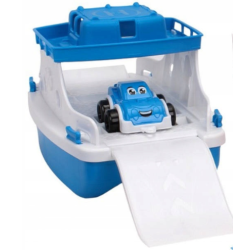 Pojazd podwodny i autko. Prom, dzięki swojej konstrukcji unosi się na wodzie i będzie długotrwałą zabawką do kąpieli. Może transportować pasażerów, samochody oraz różne ładunki. Dodatkowe autko, które jest dołączone do zestawu, również nadaje się do wodnej zabawy! Prom wyposażony jest w dwie drabinki do wjazdu i wyjazdu samochodów. Podczas poruszania się po wodzie, drabiny są ukryte w kadłubie i nie przeszkadzają w ruchu. Specjalne otwory w kadłubie pozwalają na szybsze osuszenie i wylanie wody z zabawki.