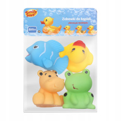 Z tak ślicznymi zwierzątkami, już żaden maluch nie będzie bał się kąpieli. Zabawki są idealne do małych rączek, mogą też posłużyć jako gryzaki, przy pojawianiu się ząbków. Zwierzątka piszczą przy naciskaniu.