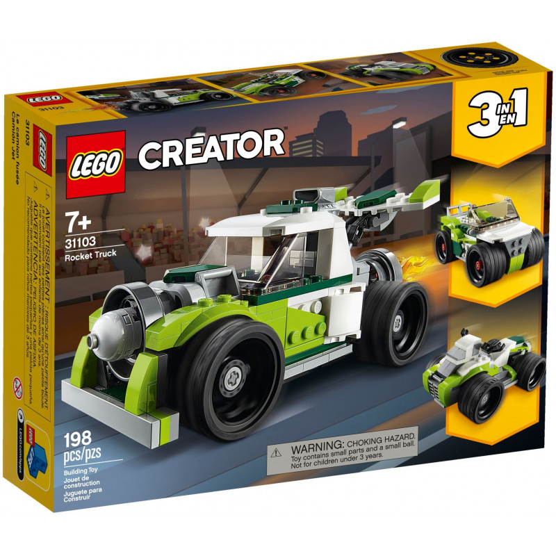 Zestaw zawiera 198 elementó potrzebnych do zbudowania pojazdu. Model ma funkcję 3 w 1 możesz go przebudować w jeszcze 2 inne pojazdy.