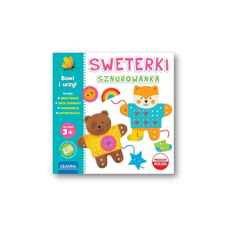 Zabawa polega na tym, aby stworzyć śliczny wzór na sweterku. Sznureczki w dłoń. Czas uwolnić Waszą kreatywność. Czy to będzie gwiazda, a może kwiatek? Możliwości są niemal nieograniczone! Zabawa ćwiczy motorykę małą i kreatywność.
