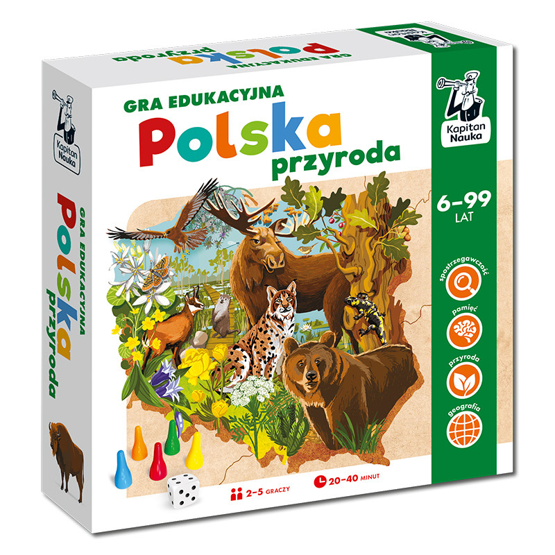 Polska przyroda to rodzinna gra planszowa dla miłośników polskiej fauny i flory. Podczas wędrówki przez parki narodowe gracze będą przemierzać malownicze regiony Polski i poznawać ciekawostki dotyczące roślin, zwierząt i atrakcji przyrodniczych. A przy okazji rozwiążą zagadki, zbiorą pieczątki i zaplanują własne podróże.