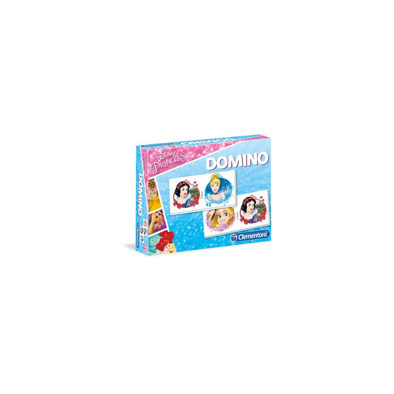 Domino Księżniczki gra firmy Clementoni. Klasyczna gra w domino gra w domino. Zestaw składa się z kartoników z obrazkami z filmu animowanego Disneya. Ilość graczy 1+ Wiek 4+