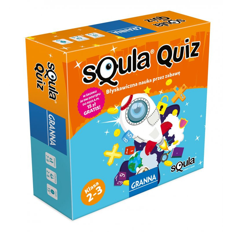 Squla Quiz klasa 2-3 firmy Granna. Gra zawierająca ponad 100 ciekawych pytań z zakresu różnych przedmiotów szkolnych. Dodatkowo załączono kod dostępu do platformy edukacyjnej squla.pl. Liczba graczy 2-6 Wiek 7-9