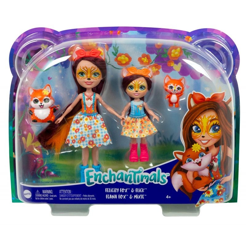 Poznaj siostrzyczki Enchantimals! Urocze i sympatyczne siostry Enchantimals – starsza (15 cm) i młodsza (10 cm) – uwielbiają robić wszystko razem! Do wyboru są: Bree Bunny, Felicity Fox, Danessa Deer, Patter Peacock i Sage Skunk z młodszymi siostrzyczkami. Każda lalka ma też do towarzystwa figurkę zwierzątka. Dzieci pokochają wyjątkową więź łączącą te siostry Enchantimals. Zestaw z 2 lalkami i 2 figurkami zwierzątek zapewnia mnóstwo wesołej zabawy dla najmłodszych. Zestawy sprzedawane oddzielnie, zależnie od dostępności. Kolory i elementy dekoracyjne mogą się różnić.