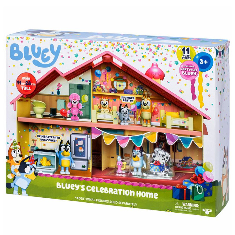 Bluey Blue Dom rodzinny Świętowanie w domujest bogato wyposażonym zestawem dla wszystkich fanów bajki o rezolutnym, niebieskim piesku. Odgrywaj sceny, które znasz z serialu, takie jak wspólne jedzenie posiłków czy kładzenie się spać!