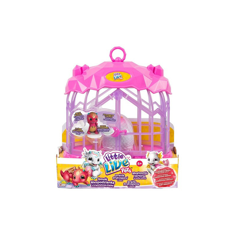 Smok z kryształową klatką Little Live Pets firmy Cobi. Smoki ukryte w jajkach. Nigdy nie wiesz na jakiego trafisz. Obserwuj jak Twój smok się wykluwa, skacze po stole, próbuje nauczyć się latać machając skrzydełkami, głaskaj go i przytulaj. Zestaw zawiera baterie testowe, smoka, jajko oraz kryształową klatkę i instrukcję. Wiek 5+