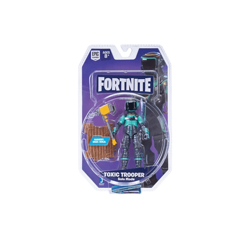 Figurka Toxic Trooper z serii Fortnite firmy TM Toys. Fortnite to popularna gra komputerowa. Dołącz do jej fanów! Przenieś zabawę z wirtualnego świata do realnego i stwórz niepowtarzalną kolekcję figurek bohaterów z gry! Każda figura wykonana jest z dużą precyzją i dbałością o każdy szczegóły, posiada kilka punktów artykulacji. Zestaw zawiera figurkę, narzędzie, elementy do budowania, instrukcję. Wysokość 10cm