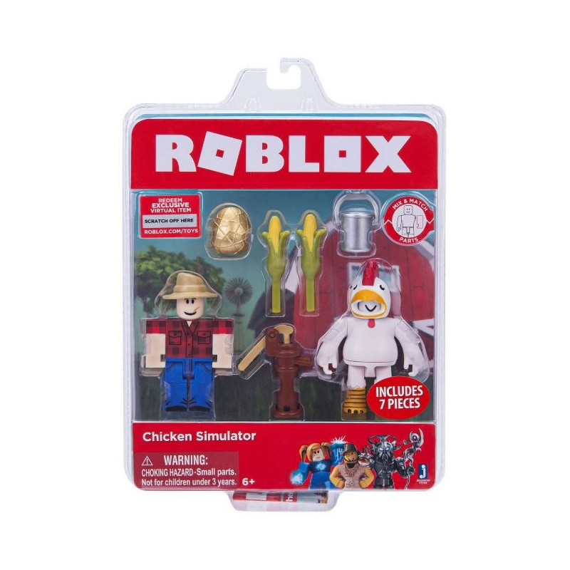 Roblox 2pak Chicken Simulator firmy TM Toys. Figurki z gry online Roblox. Miksuj figurki miedzy sobą, wymieniaj elementy miedzy różnymi postaciami. Zestaw zawiera 2 figurki oraz akcesoria oraz zdrapkę odblokowującą wirtualny przedmiot.