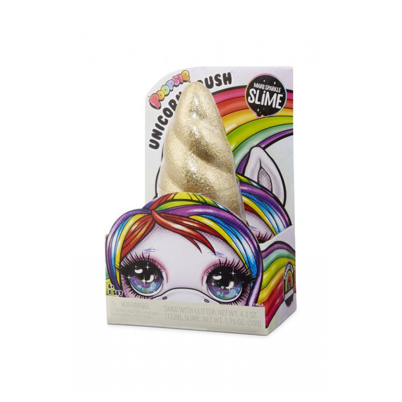 Poopsie Unicorn Crush firmy MGA. Złoty Róg Jednorożca, który kryje w sobie slime. Dodatkowo służy do jego przechowywania. W zestawie z plakatem kolekcjonerskim. Do zebrania aż 35 różnych glutów. Zabawki wysyłamy losowo ze względu na nieprzezroczystość opakowania.