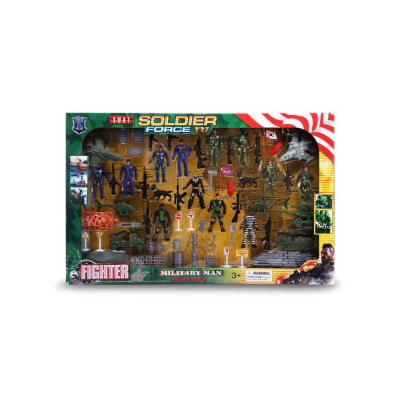 Zestaw wojskowy XXL zawiera figurki żołnierzy, pojazdy, broń, znaki i akcesoria. Idealny na prezent dla małego fana wojska.