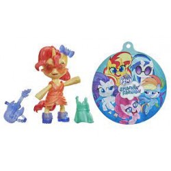 Zestaw zawiera figurkę Sunset Shimmer, którą można ustawiać w różnych pozach, oraz akcesoria, a w tym niespodzianki! Połóż torebkę z akcesoriami na płaskiej powierzchni, uderz ją ręką, a potem popatrz jak wypełnia się powietrzem i... pęka. Torebka pęknie, a ukryte w niej akcesoria wykorzystaj do zabawy. Wiek 5+.
