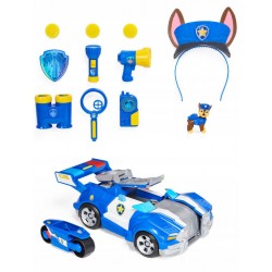 W zestawie prezentowym Chase'a znajdziesz 12 ekscytujących przedmiotów związanych z twoim ulubionym szczeniakiem m.in. pojazd Transformig City Cruiser z figurą kolekcjonerską i zestawem do odgrywania ról. Policyjny krążownik i motocykl ma wyrzutnie pocisków, migające światła i realistyczne dźwięki. Przełącz go w tryb obronny i chroń Chase'a przed spadającymi odłamkami. Przód się rozszerza, odsłonia broń Chase'a, a wyrzutnia pocisków wysuwa. Włącz światła i dźwięki, zacznij strzelać dyskami (trzy w zestawie), aby pokonywać przeszkody, a na koniec przełącz się w tryb motocyklowy. Wystarczy, że naciśniejsz czerwony przycisk we wnętrzu pojazdu, aby wystrzelić Chase'a i jego motocykl. Możesz także przebrać się za Chase'a. Przymocuj odznakę Psiego Patrolu, wsuń na głowę opaskę z czapką Chase'a. Baw się z pomocą latarki, megafonu, szkła powiększającego i wielu innych zabawek, to doskonałe dodatki do odgrywania ról. W środku znajduje się tak dużo elementów, że to doskonały prezent dla wszystkich dzieci. Pojazd Chase'a działa na 3 baterie LR44 ( w zestawie testowe). Zestaw sprawi wiele radości. Wiek 3+.