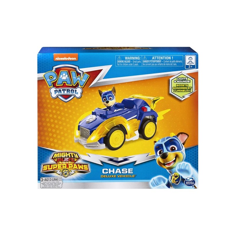 Poczuj się jak członek ekipy Mighty Pups Psiego Patrolu. Razem z bohaterami serialu i ich pojazdami. Odtwarzaj ulubione sceny z bajki lub twórz nowe pełne emocji przygody. Figurka nosi charakterystyczny strój i jest wiernym odwzorowaniem super bohatera Chase'a z bajki. Pojazd posiada napęd, dzięki czemu delikatnie sunie się, pchany ręką dziecka.