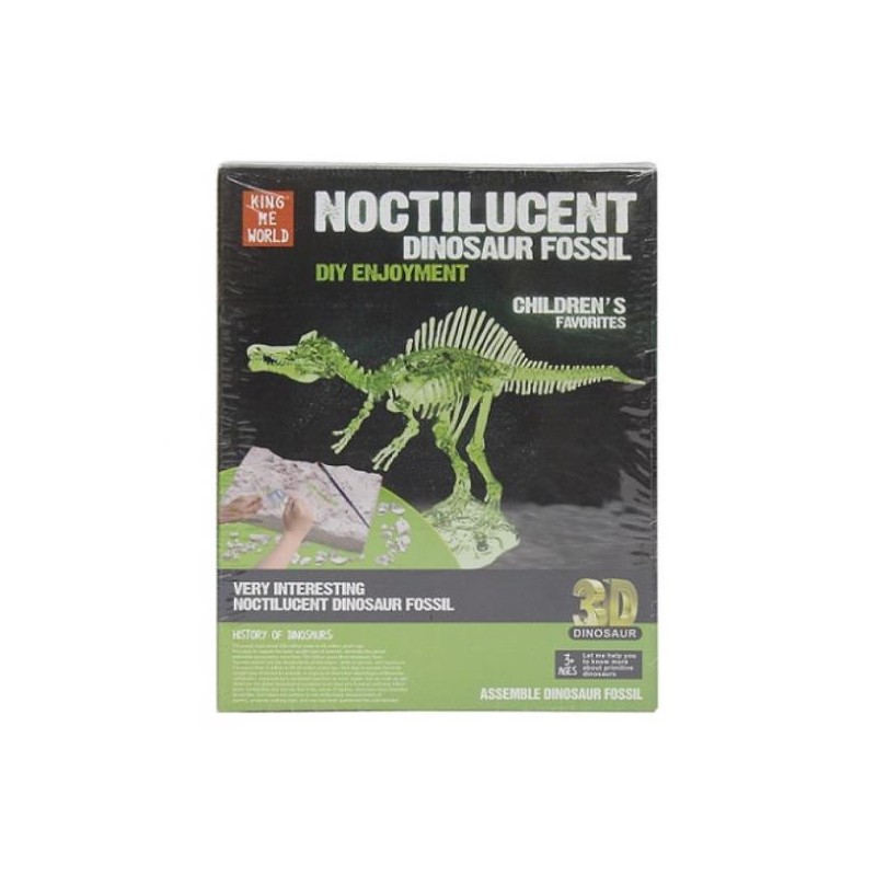 Złóż wykopane kości dinozaura, aby zbudować model dinozaura o długości około 18-28 cm, który świeci w ciemności. Za pomocą pędzla trzeba wyczyścić wykopany szkielet, który świeci w ciemności.