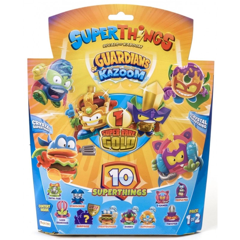 W tym opakowaniu znajduje się aż 10 różnych figurek, a jedna z nich jest w kolorze złotym (Bohater lub Złoczyńca)! SuperThings to przedmioty codziennego użytku przekształcone w Superbohaterów i Złoczyńców. Ścierają się ze sobą na ulicach Kaboom City, a każdy SuperThing ma swojego rywala - znajdź pary rywali i skompletuj własne drużyny!