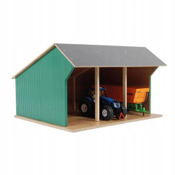 Ten stodoła idealnie nadaje się do przechowywania dowolnej techniki rolniczej. Więc ty i twoje dzieci możecie wymyślać nową historię farmy za każdym razem, gdy się bawicie. Ten realistyczny garaż w skali 1:32 wykonany jest z drewna i może pomieścić trzy maszyny rolnicze o jednakowej skali. Garaż posiada 3 stajnie i dach, który otwiera się. Jest bezpieczny, estetycznie atrakcyjny i gwarantuje bezpieczną zabawę przez wiele lat.Zwróć uwagę, że ten garaż zabawkowy nie zawiera zabawkowych pojazdów, które są przedstawione na zdjęciu.