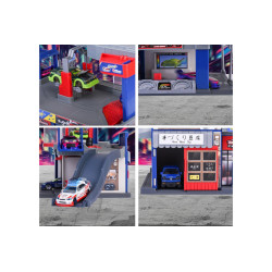 Stacja do tuningu jest w kolorach szarości z elementami czerwono-niebieskimi. Wyposażona została w dwa poziomy oraz jeden zjazd dla samochodzików.