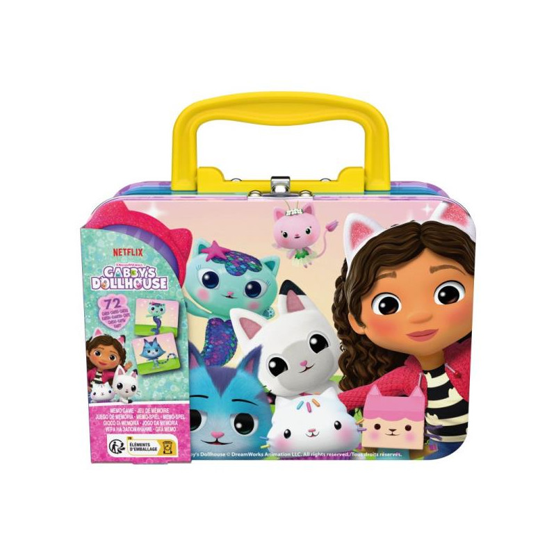 Zdobądź tę kolorową talię kart do gry w dopasowywanie obrazków z ekscytującymi postaciami i scenami z oryginalnego serialu DreamWorks Netflix Koci Domek Gabi. Ta zabawna i ekscytująca gra memory z 72 kartami jest odpowiednia dla wszystkich dzieci w wieku od 3 lat. Graj z 2-4 przyjaciółmi lub członkami rodziny. Aby wygrać, należy być graczem, który dopasował największą liczbę obrazków po odwróceniu wszystkich kart. Zabierz tę talię kart w podróż, na rodzinne wakacje lub do domu na święta dzięki wygodnemu blaszanemu pudełku do przechowywania. Gra jest łatwa dla każdego, niezależnie od tego, czy oglądał każdy odcinek Koci Domek Gabi, czy nie zna tego serialu. Zarówno dzieci, jak i dorośli pokochają widok Gabi i jej przyjaciół na tych kartach. Te zabawne postacie z serialu Netflix sprawią, że z miejsca będziecie gotowi do gry z tą nową talią kart do gry w dopasowywanie obrazków. Ta gra jest jedną z wielu zabawek i gier z serii Koci Domek Gabi i będzie idealnym prezentem dla każdego chłopca lub dziewczynki, którzy kochają ten serial. Zaopatrz się teraz na specjalne okazje, urodziny i nie tylko. Weź udział w zabawie z Kocim Domkiem dzięki nowej grze karcianej z serii Koci Domek Gabi.