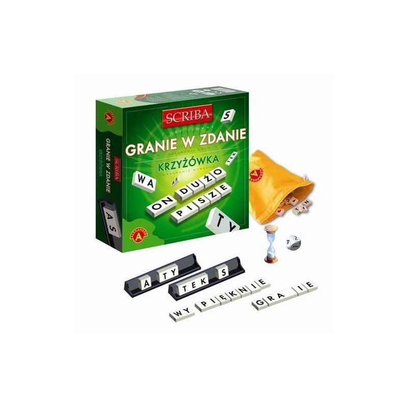 GRANIE W ZDANIE KRZYŻÓWKA 13498 ALEXANDER "Granie w zdanie" i "Krzyżówka" to dwie różne gry słowne, ale jednakowo emocjonujące i atrakcyjne. W grze "Granie w zdanie" gracze starają się jak najszybciej układać zdania z literowych tabliczek, losowanych ze wskazaniem przez rzut kostką. Ten, kto pierwszy zdobędzie ustaloną liczbę punktów za układanie zdań, zostaje zwycięzcą. W grze "Krzyżówka" zadaniem graczy jest utworzyć jak najszybciej wyraz z wylosowanych liter na plastikowych tabliczkach. Utworzony wyraz musi jednak pasować do liter wyrazów ułożonych na stole wcześniej. W obu grach wykonanie punktowanych zadań utrudnia wprowadzenie tabliczek wieloliterowych. Ułożenie wyrazu, a tym bardziej zdania z tabliczką o kilku literach (niezmiennie ze sobą połączonych), wymaga dużo większego wysiłku, ale daje też większą satysfakcję z wygranej. Zawartość pudełka: 70 tabliczek jednoliterowych, 2 puste tabliczki, 10 tabliczek dwuliterowych, 4 tabliczki trzyliterowe, 1 tabliczka czteroliterowa, kostka do gry, worek, 6 półeczek, klepsydra, instrukcja.