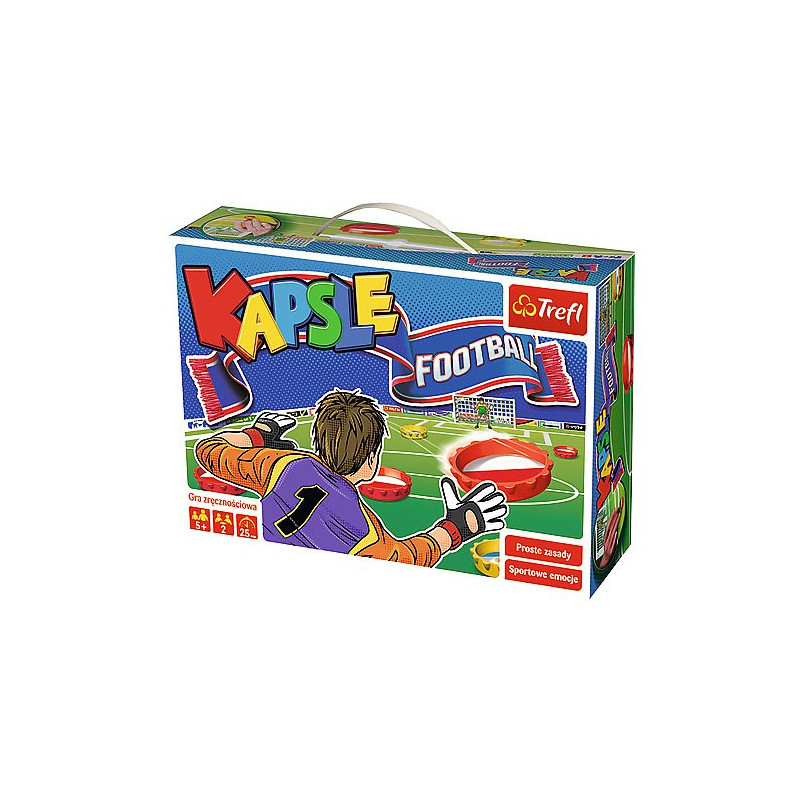 Kapsle Football gra firmy Trefl. Gra zręcznościowa łączące proste zasady ze sportowymi emocjami. Daj się pochłonąć boiskowym zmaganiom, dokładnie celuj i skutecznie broń. Ilość graczy 2 Wiek 5+ Uwaga:Nieodpowiednie dla dzieci w wieku poniżej 3 lat ze względu na ryzyko udławienia małymi elementami.