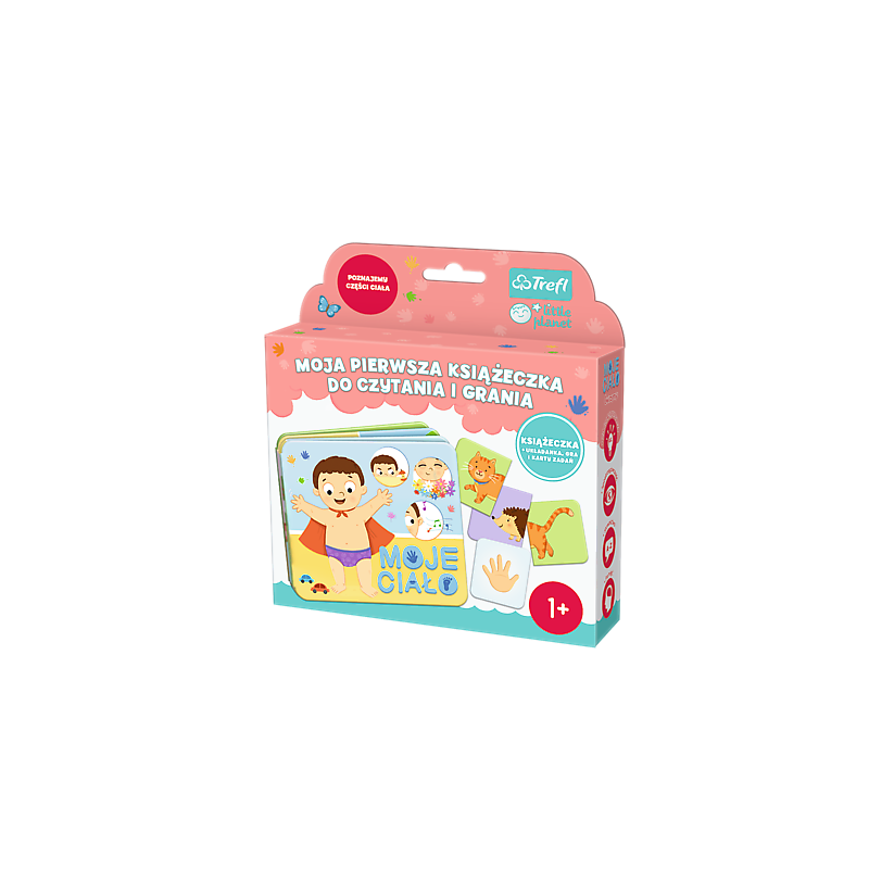 Moje ciało książeczka firmy Trefl. Pierwsza książeczka harmonijka z rymowanym tekstem do czytania i grania. Kryje w sobie również planszę do gier i zabaw, żetony i puzzle. W zestawie z książeczką z inspiracjami zabaw. Wiek 2,5+