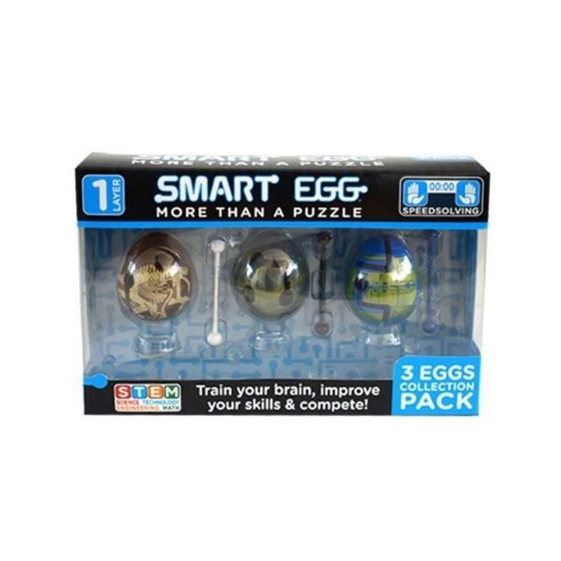 Smart Egg 3-Pak firmy TM Toys. Niesamowita zabawka, którą możesz używać na kilka różnych sposobów. Włóż patyczek w górny otwór, pokonaj labirynt i wyjmij go na dole. Istnieje wiele różnych ścieżek i możliwości, sprawdź każdą z nich. Zestaw zawiera 3 jajka. Wiek 8+